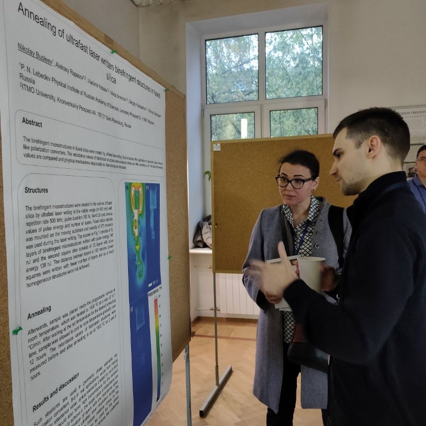 Открыл конференцию помощник директора ФИАН по научной работе Сергей Юрьевич Савинов, который выступил с докладом, посвященным 100-летию Н.Г. Басова. Руководитель Отделения квантовой радиофизики им. Н.Г. Басова Андрей Алексеевич Ионин представил доклад Nikolai Basov – Prometheus of the Laser Era.