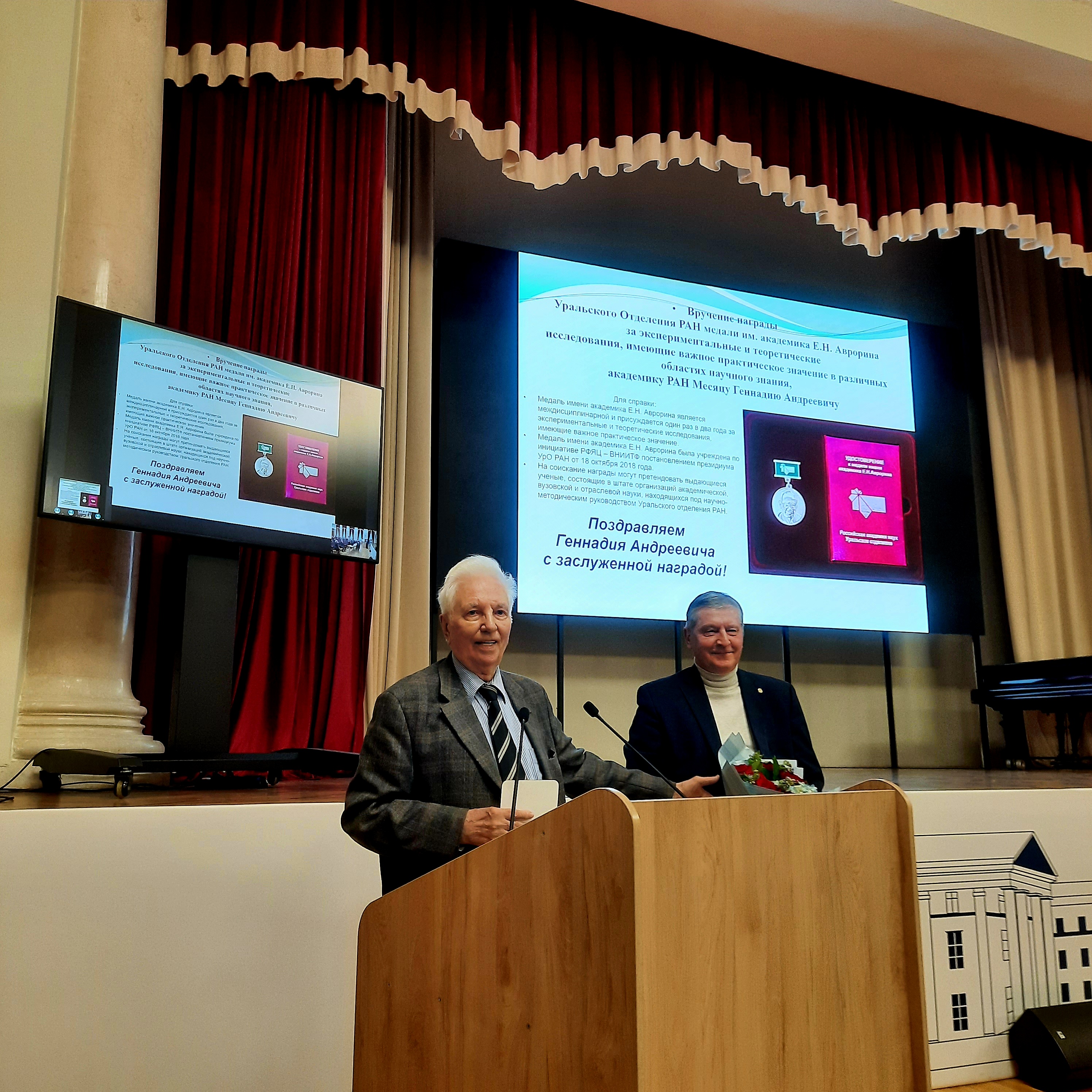 Академик Г.А. Месяц получил награду Уральского Отделения РАН, медаль имени академика Е.Н. Аврорина за экспериментальные и теоретические исследования, имеющие важное практическое значение в различных областях научного знания.