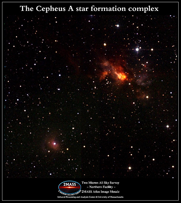 Международная команда «Радиоастрона» исследовала область активного звездообразования «Цефей А» (по имени созвездия), находящуюся на расстоянии около 2 тысяч световых лет от Земли в линии излучения молекулы воды на частоте 22 гигагерца.