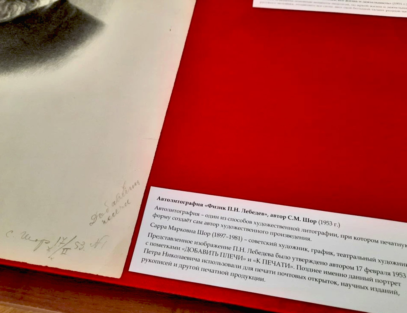 На выставке, организованной отделом по связям с общественностью ФИАН, представлены редкие артефакты и личные вещи Петра Николаевича, часть из которых демонстрируется впервые. Среди экспонатов – приборы для установки по измерению светового давления на газы, которые Лебедев сделал своими руками в начале ХХ века, а также единственная сохранившаяся автолитография с портретом великого физика.