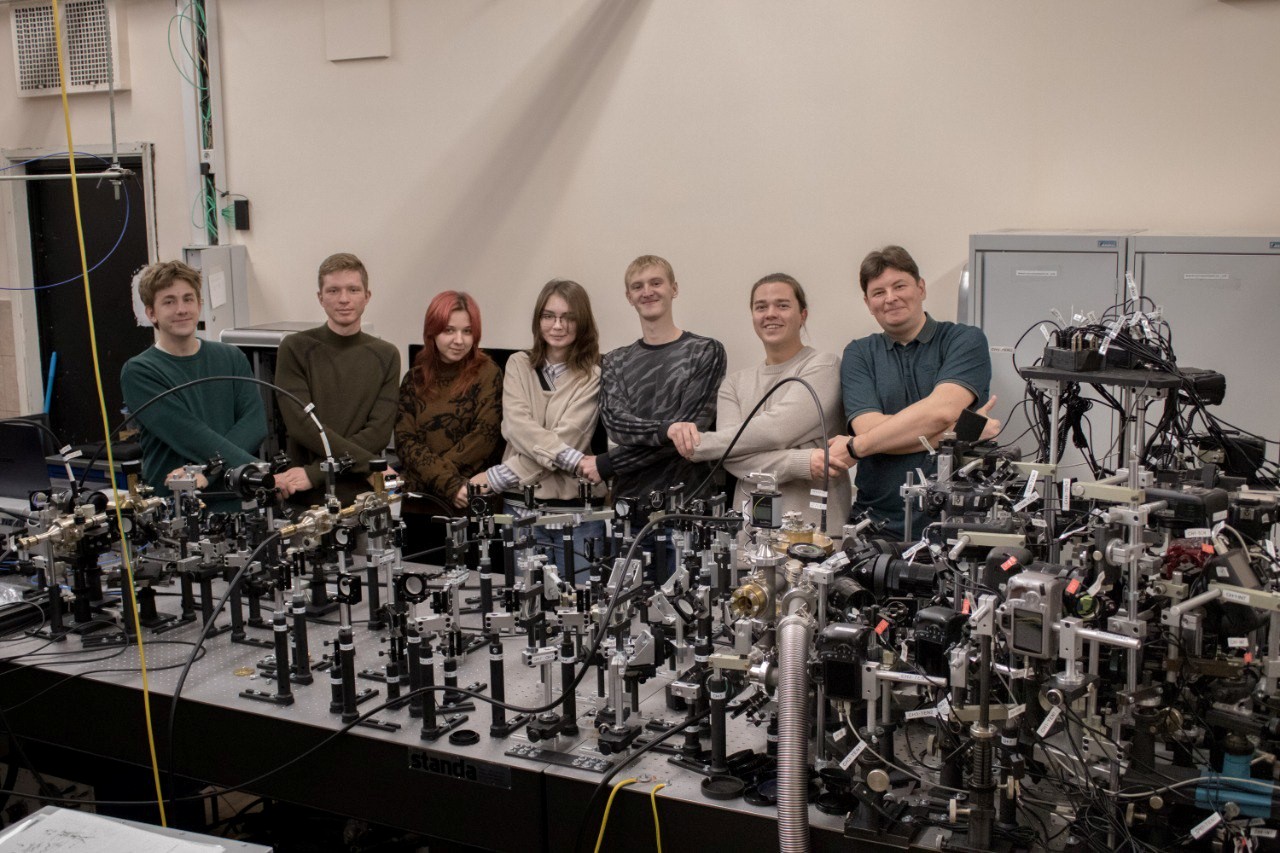 Фотография экспериментальной установки и коллектива молодых ученых. Источник: Егор Паркевич