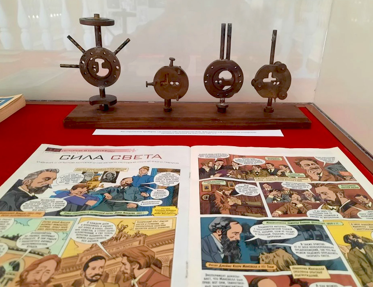На выставке, организованной отделом по связям с общественностью ФИАН, представлены редкие артефакты и личные вещи Петра Николаевича, часть из которых демонстрируется впервые. Среди экспонатов – приборы для установки по измерению светового давления на газы, которые Лебедев сделал своими руками в начале ХХ века, а также единственная сохранившаяся автолитография с портретом великого физика.